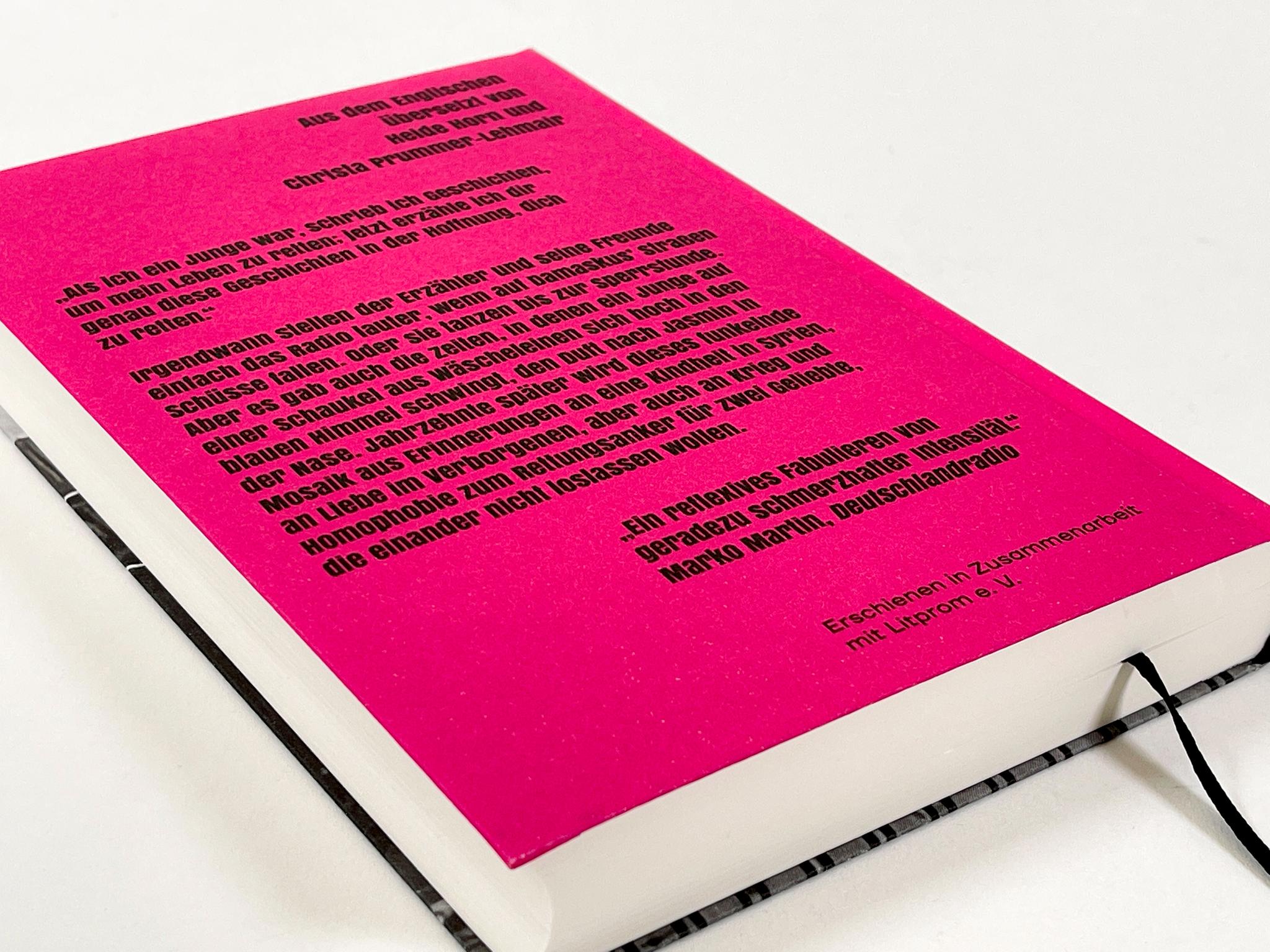 „Als ich ein Junge war, schrieb ich Geschichten, um mein Leben zu retten; jetzt erzähle ich dir genau diese Geschichten in der Hoffnung, dich zu retten.“ Irgendwann stellen der Erzähler und seine Freunde einfach das Radio lauter, wenn auf Damaskus‘ Straßen Schüsse fallen. Oder sie tanzen bis zur Sperrstunde. Aber es gab auch die Zeiten, in denen ein Junge auf einer Schaukel aus Wäscheleinen sich hoch in den blauen Himmel schwingt, den Duft nach Jasmin in der Nase. Jahrzehnte später wird dieses funkelnde Mosaik aus Erinnerungen an eine Kindheit in Syrien, an Liebe im Verborgenen, aber auch an Krieg und Homophobie zum Rettungsanker für zwei Geliebte, die einander nicht loslassen wollen.