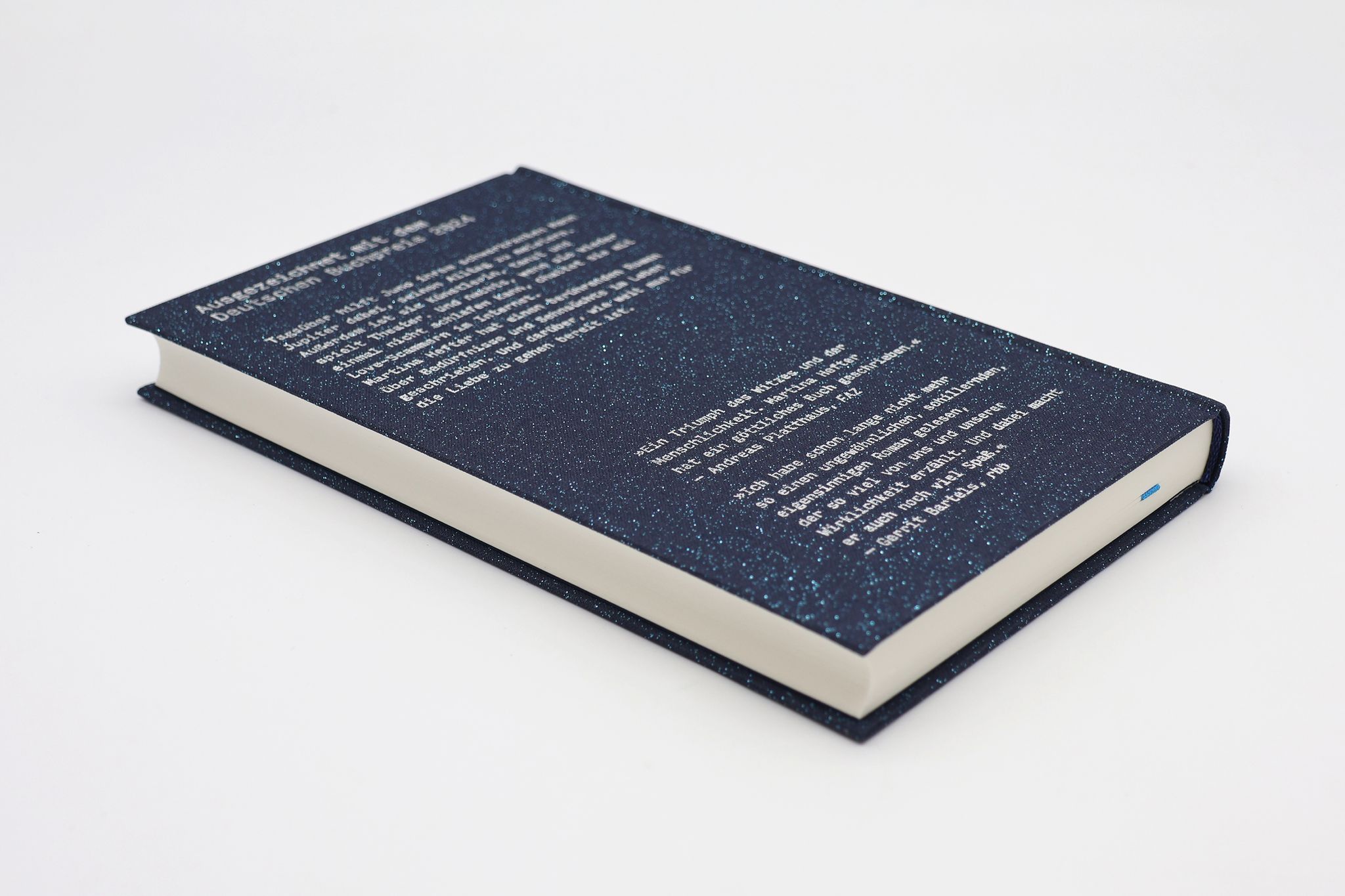Geprägtes Leinen mit Glitzer-Effekt, farbiges Vorsatzpapier, Lesebändchen, 224 Seiten, Einbandgestaltung von Clara Scheffler